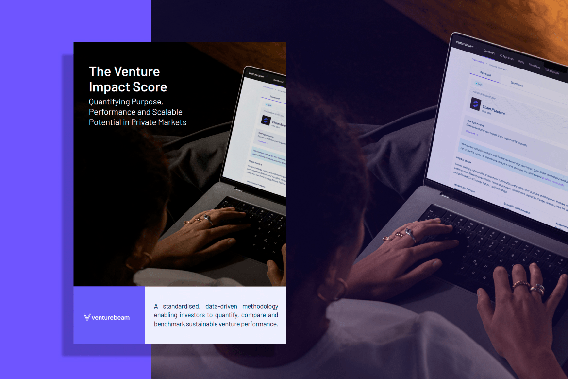 Disclaimer: This content is for informational and educational purposes only. The publication of this white paper does not constitute, and should not be construed as, investment advice, financial advice, or any offer to sell or solicitation of an offer to buy any securities or investment products. Venturebeam Limited does not provide investment advice or recommendations to invest. Readers should not rely on this information when making financial decisions and are strongly urged to seek independent professional advice before acting on any methodology detailed herein. The Venture Impact Score is a proprietary methodology and is not a prediction or guarantee of a venture’s future financial performance or success. Past performance is not indicative of future results. You assume the entire risk related to the use of this information. Regulated activity is confined to registered and approved investors on the Venturebeam platform and is provided exclusively by the regulated entities within the Venturebeam Group. Please see our full disclaimer. (link to disclaimer page on website).